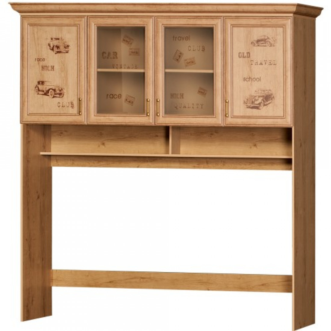 Фасады: МДФ, декор – дуб ридинг, рисунок, патина, стекло с фацетом и рисунком, зеркало