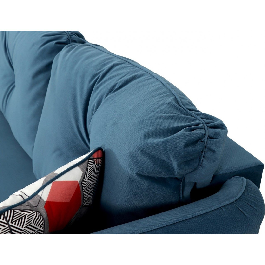 Диван украшают декоративная отстрочка, декоративные утяжки с пуговицами на подушках. Опоры дивана из массива березы подчеркивают стилистику.