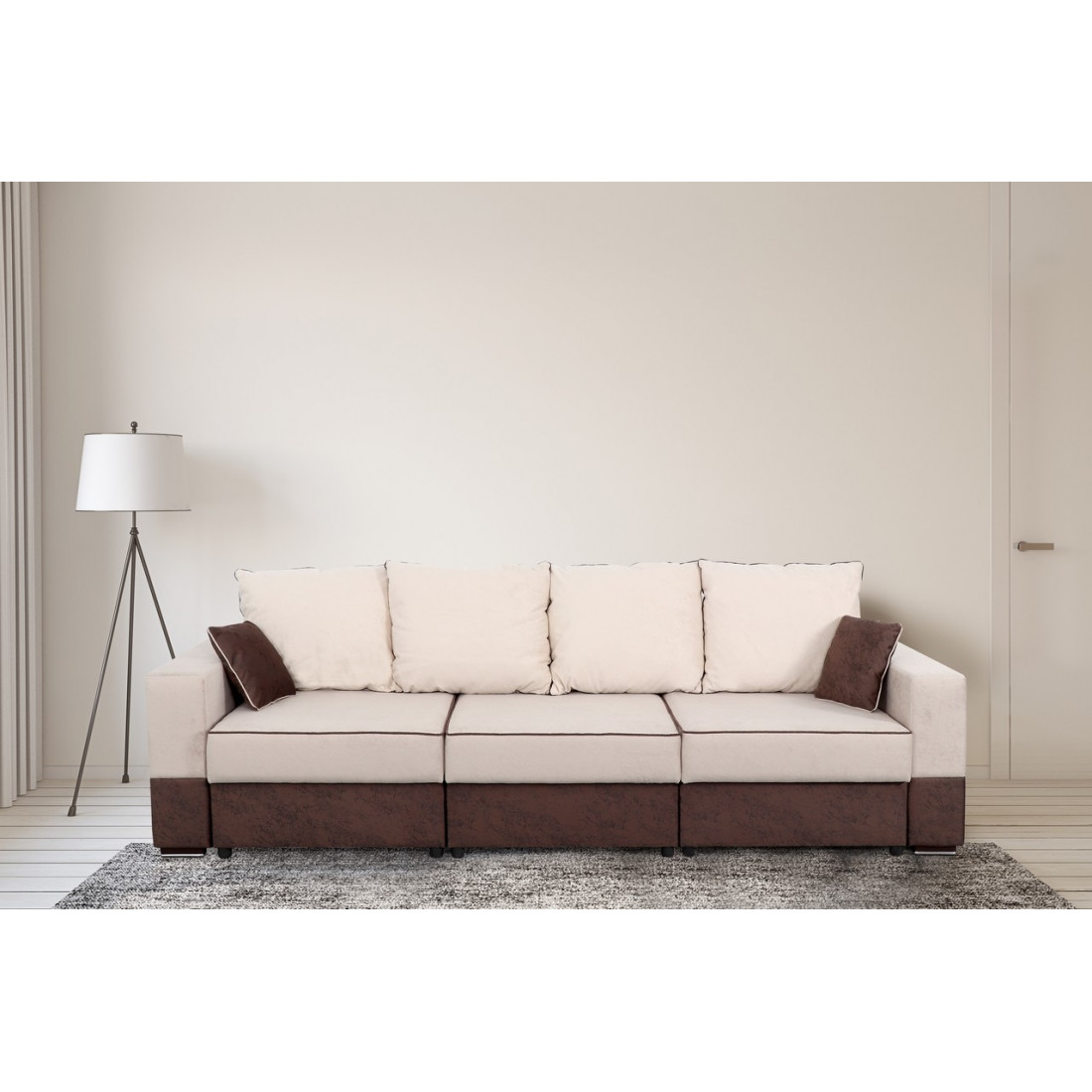 Прямой диван «Бостон-2400» может трансформироваться в угловой левый диван, угловой правый и П-образный диван. Это дает возможность его разнообразного использования.