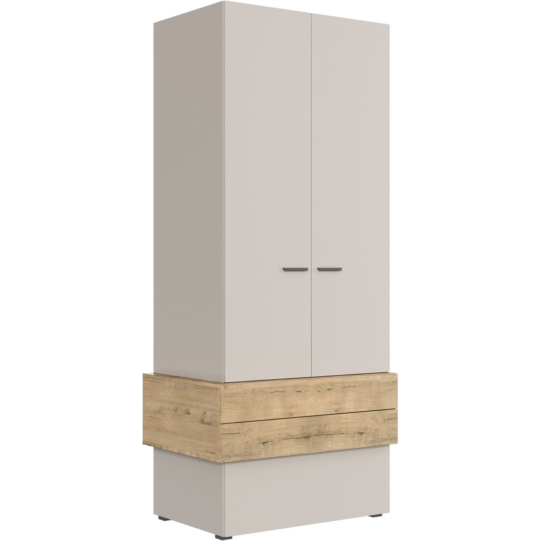 • Шкаф двухстворчатый, укомплектованный полкой, штангой и 3-мя выдвижными ящиками;