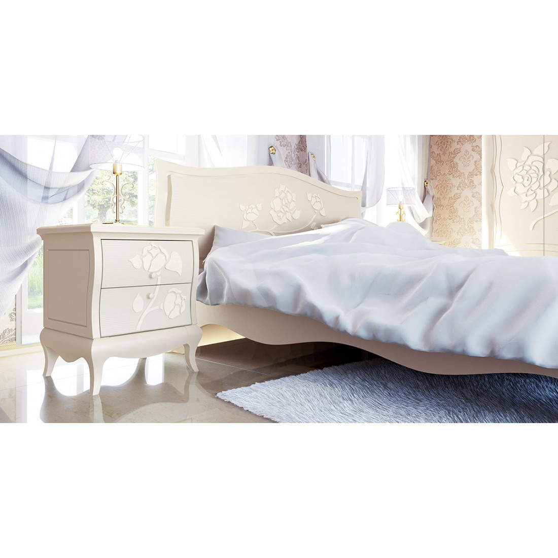 Двуспальная кровать с ортопедическим основанием МН-218-01-180 серии Астория от белорусской фабрики Мебель-Неман привлекает эксклюзивными формами резного основания и эффектным дизайном спинки. Выбранный оттенок аристократичной слоновой кости с имитацией крашенного массива добавляет визуальной ценности изделию. Купить недорогую и стильную двуспальную кровать можно по недорогой цене, отдельно и дополнив другими элементами Астории.