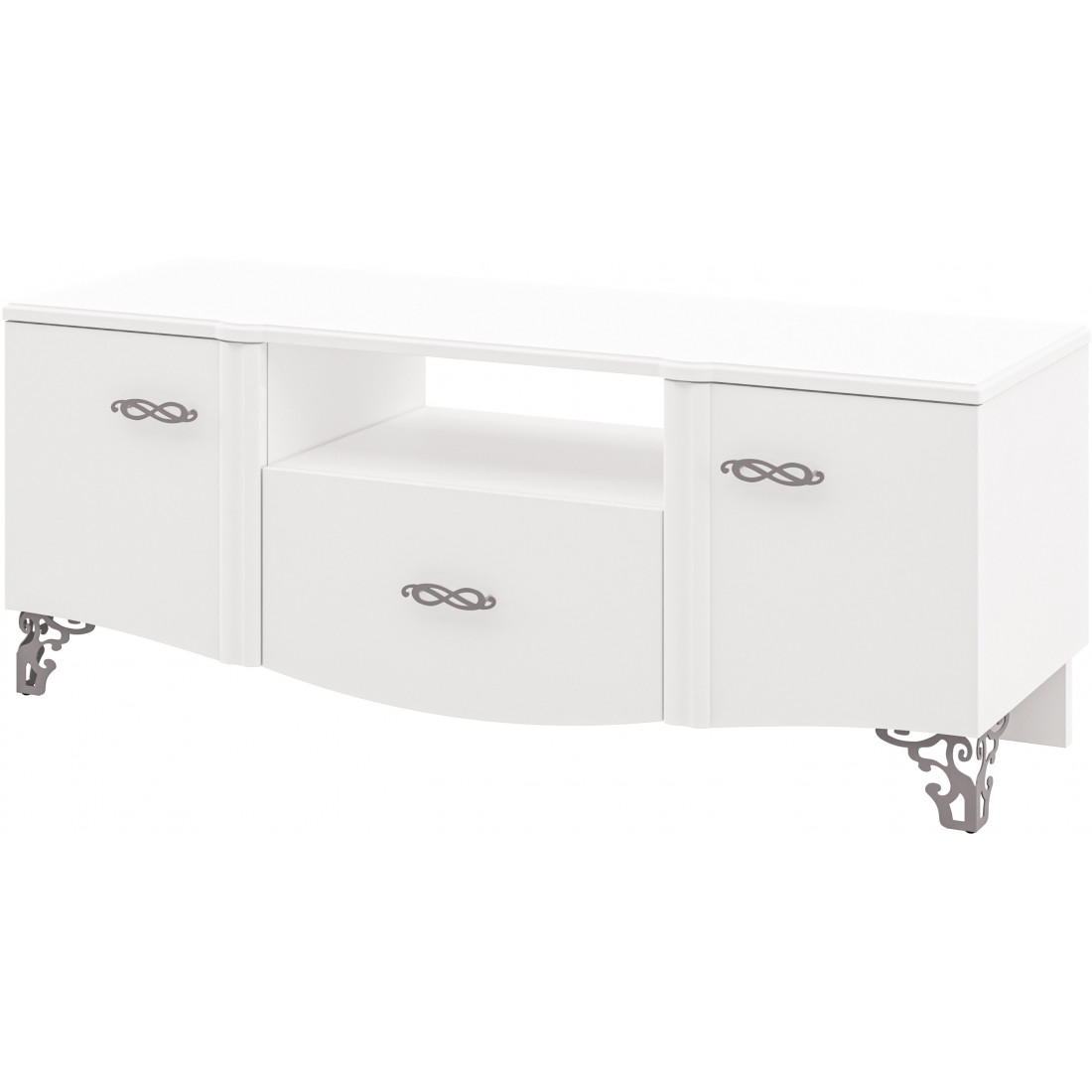 Дизайн гостиной поражает лаконичностью и изяществом. Эффектности ему придает и практические идентичное воспроизведение очертаний узора на гравировке на фигурных хромированных ручках и ножках, фрезеровке по карнизу шкафов-витрин. Купить гостиную София – добавить ощущение сдержанной роскоши в интерьерное решение гостиной.