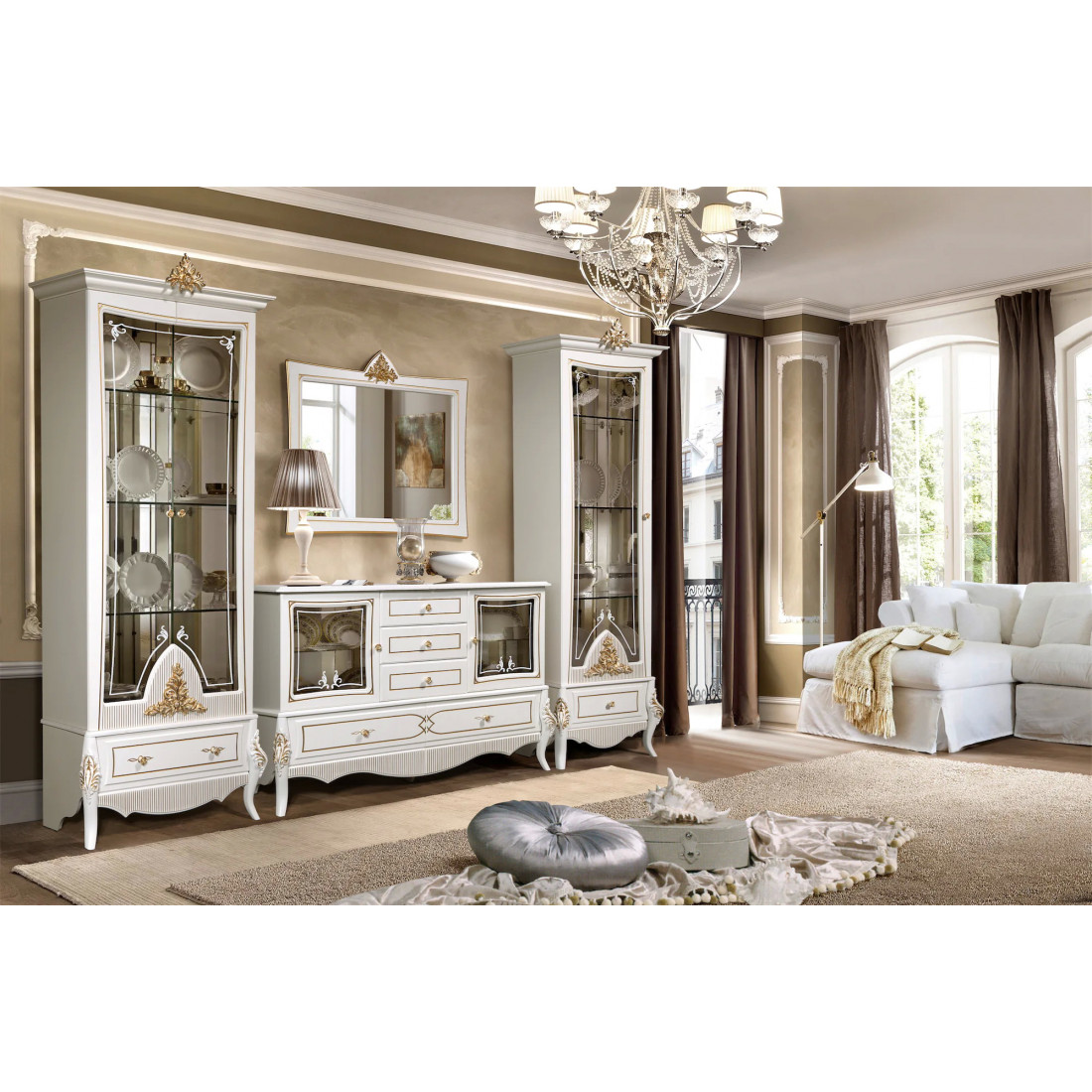 Пятистворчатая витрина в гостиную Стелла (белый золото)