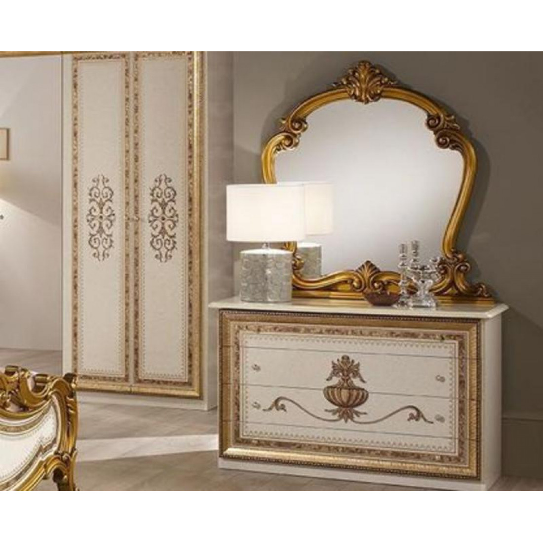 Комод для белья с зеркалом Анита (беж) от Российской фабрики «ДИА мебель» выполнен в бежевом цвете с отделкой золотых фасадов. Резная рамка цвета позолоты в которую заключено большое зеркало, придаст атмосферу роскоши и легкость в комнате. Четыре выдвижные полки с легкостью поместят все необходимое. Такой комод коллекции "Анита" придаст вашей спальне экстравагантность, и принесет свежие нотки в Ваш дом.
