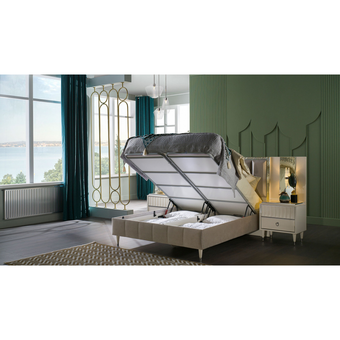 Дополните  двухспальнюю кровать Gravita (Гравита) GRAV-26от турецкого бренда BELLONA  соответствующими атрибутами для спального гарнитура.