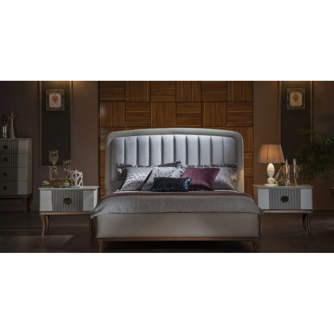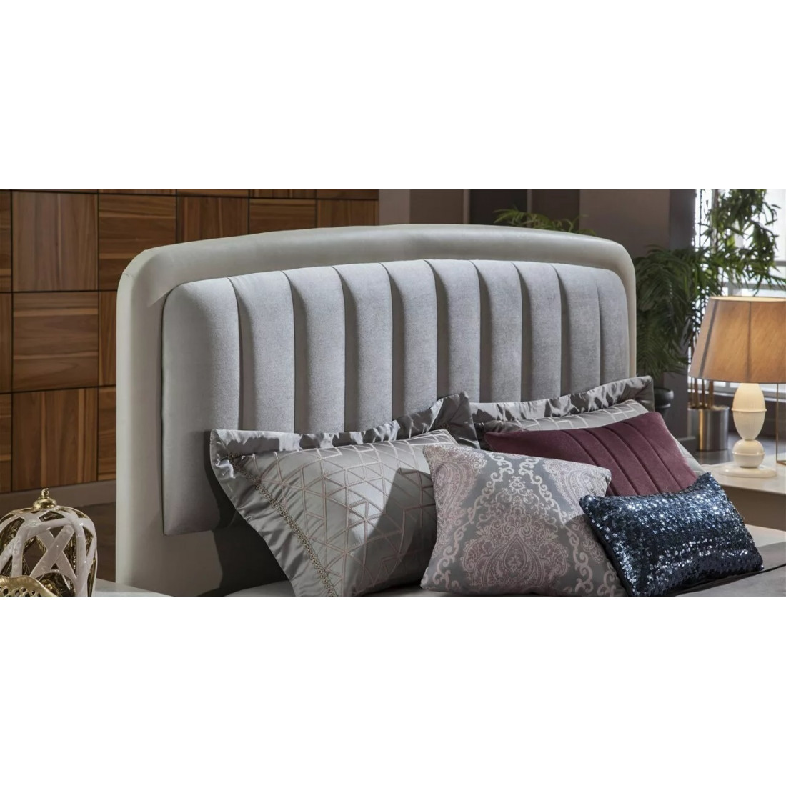 Кровать "Песаро" выполнена в классических светлых тонах коллекции. Светлое основание с деревянными ножками и мягкой центральной частью на спинке освежат вашу спальню на 100%.