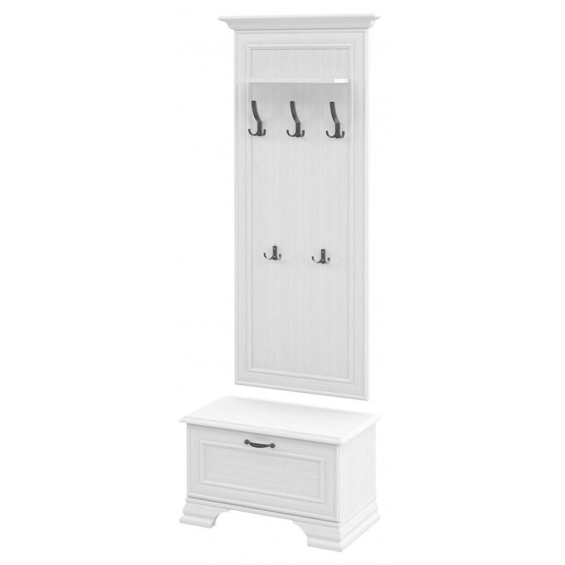 Мебель для прихожей Юнона от фабрики Мебель-Неман композиция 2 - новинка 2019 года в классическом стиле с отделкой структурной фактуры, обрамленная рамочным фасадом, где металлические ручки выгодно подчёркивают стиль и изящество, всегда актуален и востребован.