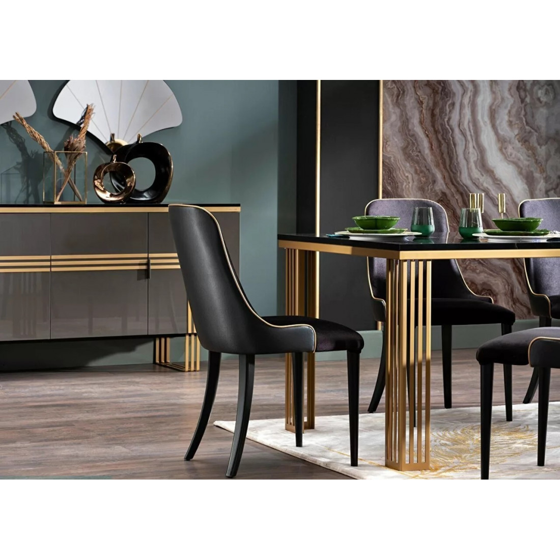 Комплект стульев для гостиной Карлино (Carlino) CARL-16A-02 в количестве 2 штук. Стулья оформлены нежной бархатистой тканью с отделкой из экокожи.