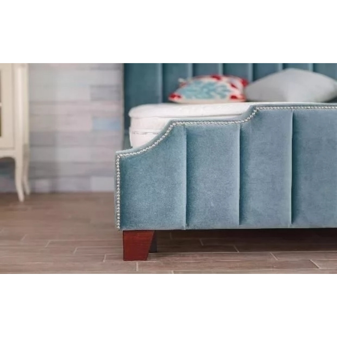 Кровать оснащена встроенным основанием для матраса — прямыми ламелями из березовой фанеры.