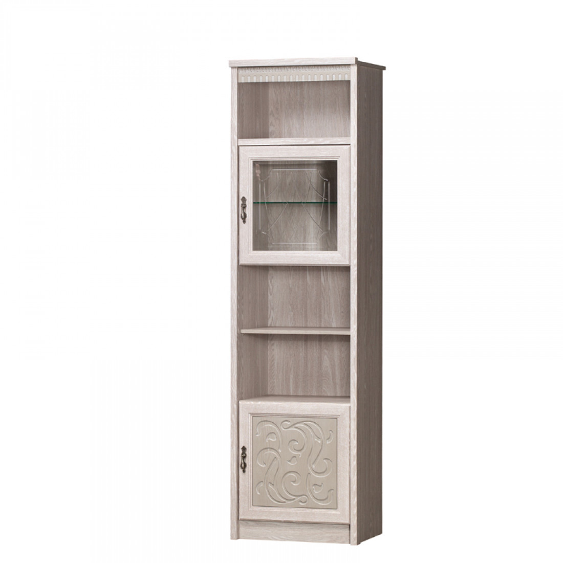 Фасады: МДФ, декор – дуб оксфорд серый, патина, зеркало с фацетом