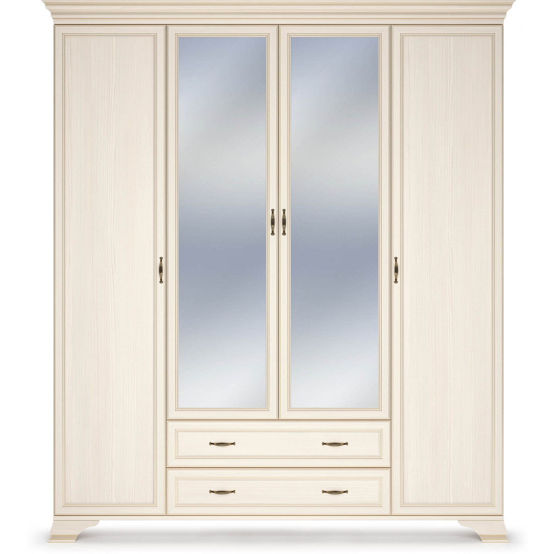 4-х дверный шкаф из коллекции для спальни «Сиена» подставляется в комплекте с боковыми фасадами, центральные двери (на выбор - зеркальные или глухие) поставляются отдельно от шкафа.