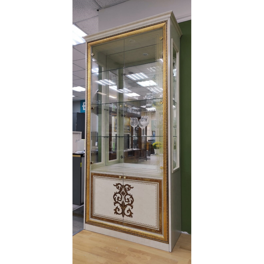 Шкаф-витрина двухдверный Анита (бежевый глянец) от Российской фабрики «ДИА мебель» Выполнена в цвете бежевый глянец с отделкой золотых фасадов. Классический стиль придают интерьеру неповторимую уникальность и роскошь. Изгибающиеся линии придают легкость и воздушность гостиной либо столовой. Коллекция "Анита" придаст вашему дому экстравагантность и принесет свежие нотки.