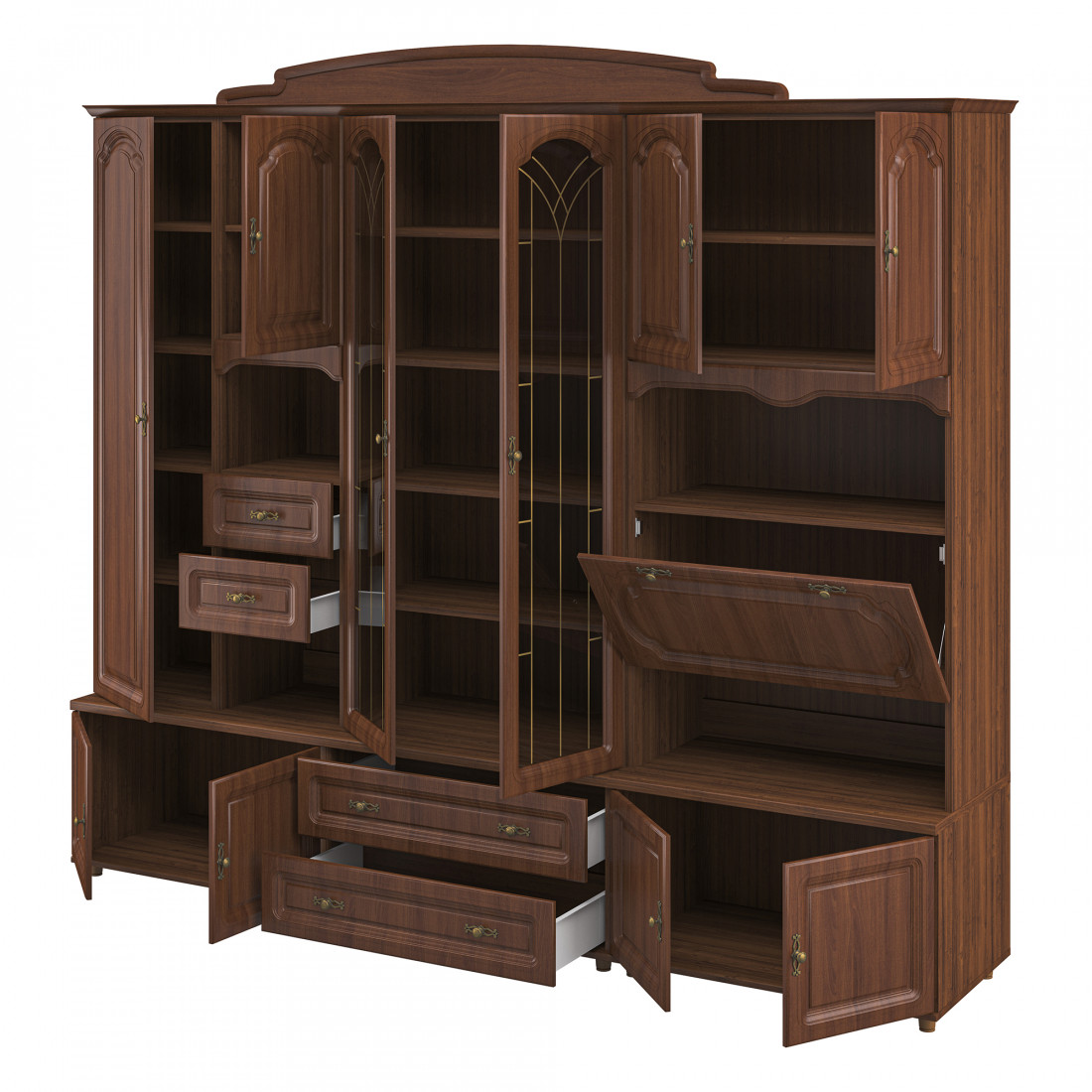 Стенка для гостиной Романтика ВК-09.2, цветовое исполнение орех структурный.