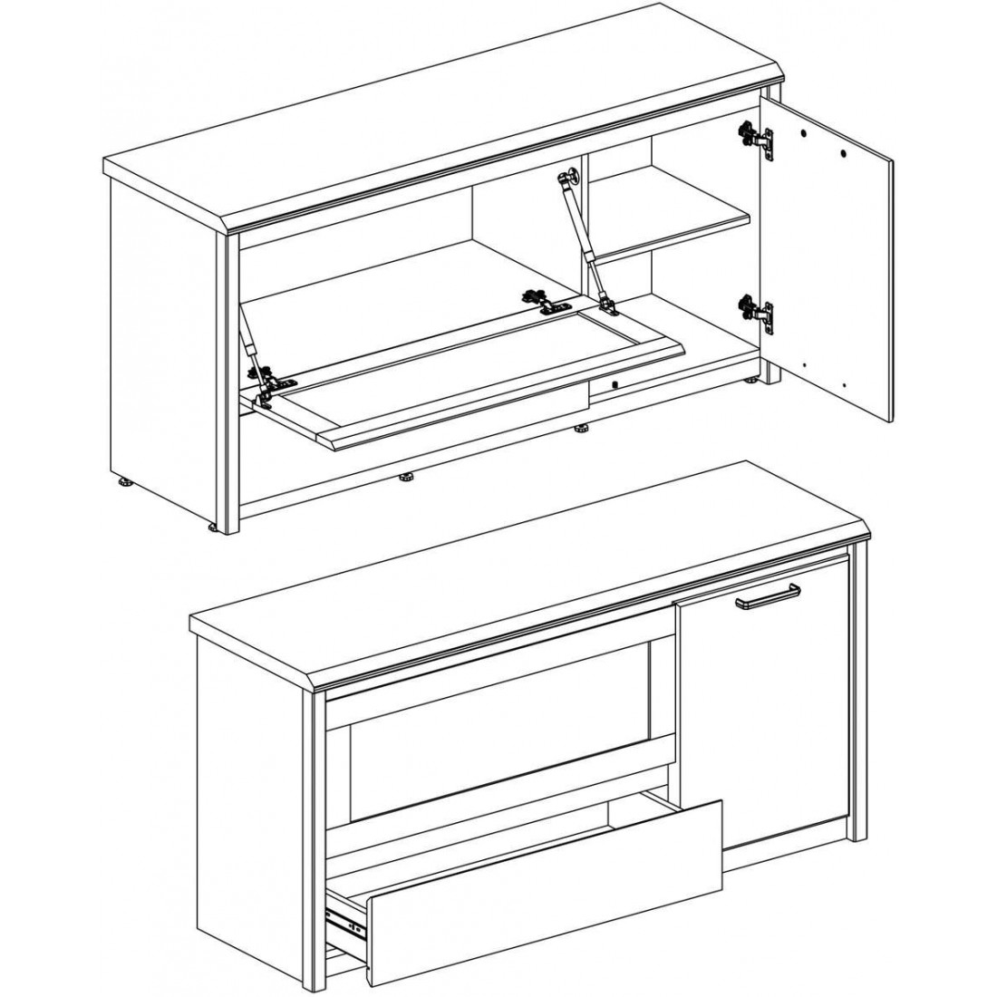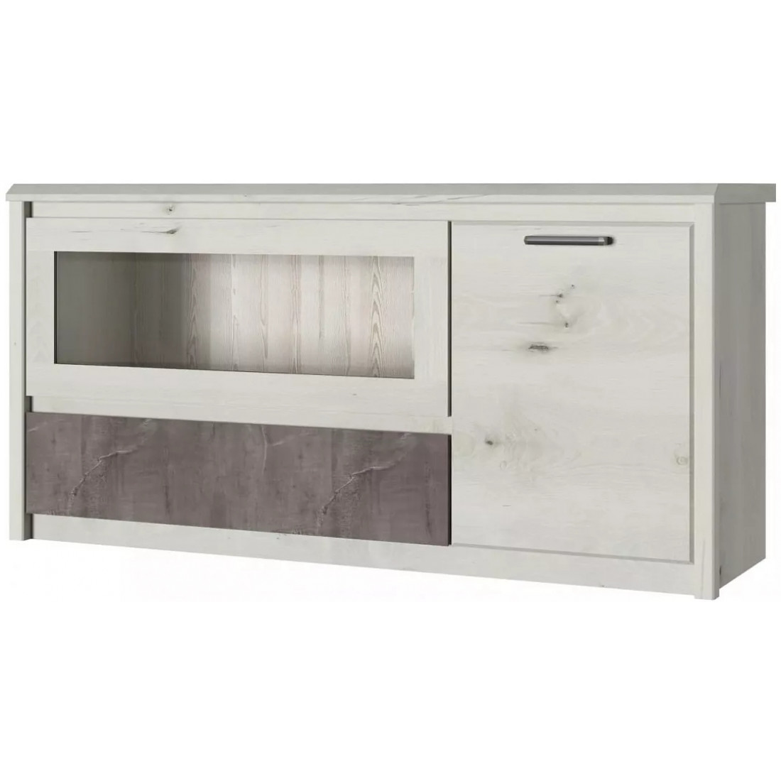 Тумба под телевизор Бьёрк RTV 1V1D1S — предмет современной коллекции в стиле Loft, где все элементы мебели выполнены в декорах ольха полярная и оникс с использованием уникальной структуры плиты.