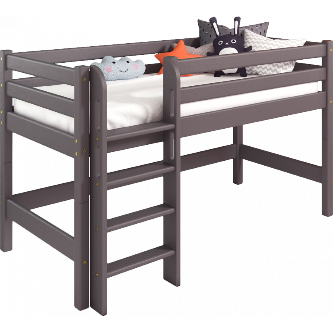 Кровать выполнена из массива дерева, может комплектоваться аксессуарами из текстиля. Отделка выполнена эмалью AqaLAC с добавления красителя цвета "Лаванда".